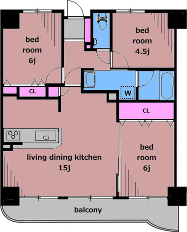3LDK 専有面積70.32㎡ バルコニー面積 11.12㎡