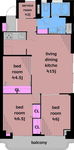 | 専有面積(壁芯) | 72.53㎡ | バルコニー | 6.0㎡ |